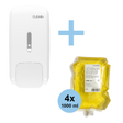 Je ontvangt in deze bundel 1x Crème Zeep Dispenser in het wit en 4 navulzakken (per stuk 1000 ml).